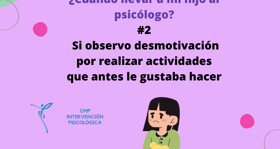 Razón 2: Otra de las señales que nos indican la necesidad de una intervención psicológica, son los cambios en el estado de ánimo de mi pequeño, por ejemplo; ya no siente interés por realizar cosas que antes le gustaban.